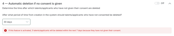 7 — Enable Automatic deletion of talent profiles when consent expires, is refused or withdrawn