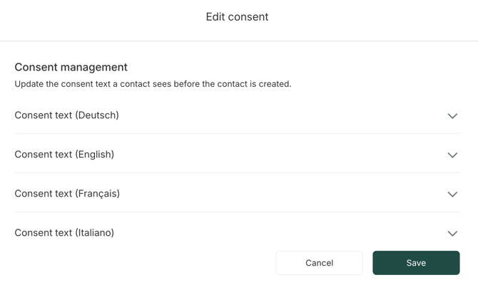 The consent texts are stored in the system independently by you during onboarding and can be edited later by the administrator at the same point.