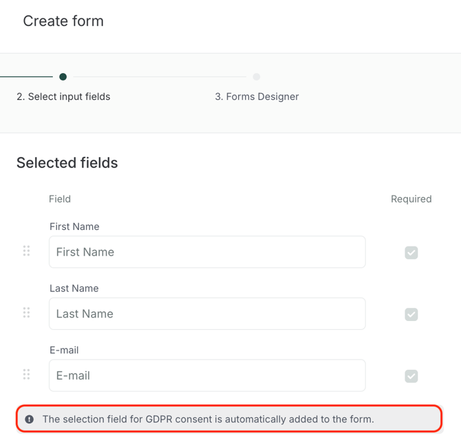 When creating a talent form, a consent form will always be attached. You can add and discard fields, but the consent for GDPR is not optional, but always mandatory. |