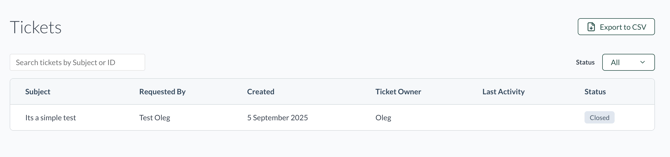From the top of this view you can press on "view all" to see every ticket that has been created from your company. Also there is the option to go back to the knowledge base or create another ticket.