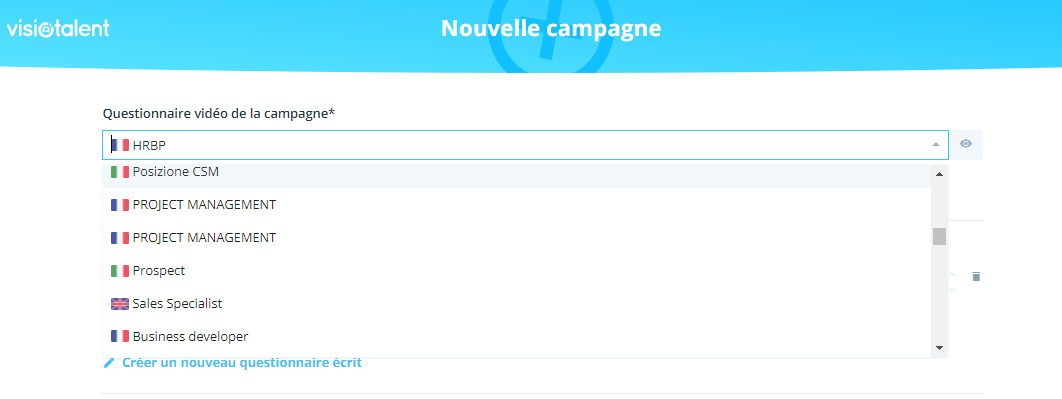 2. Créer au moins un questionnaire vidéo ou sélectionner un questionnaire existant depuis la liste déroulante.