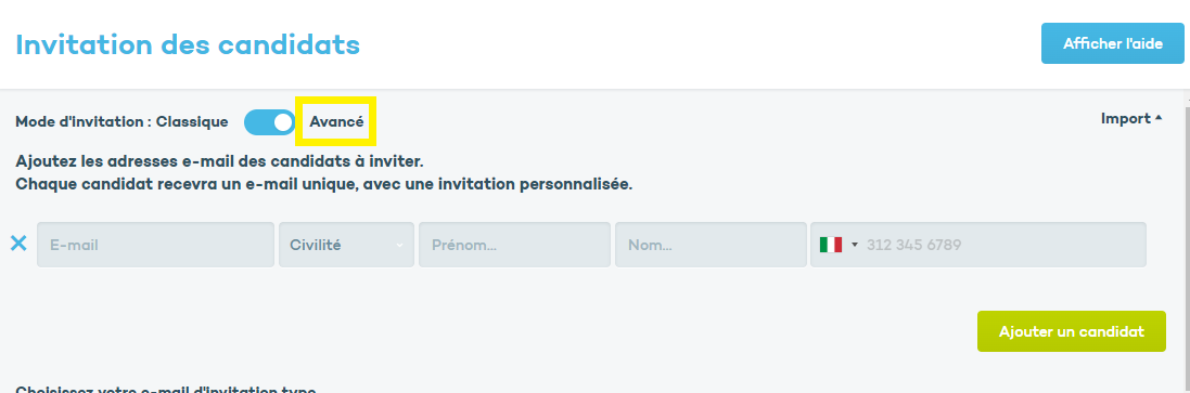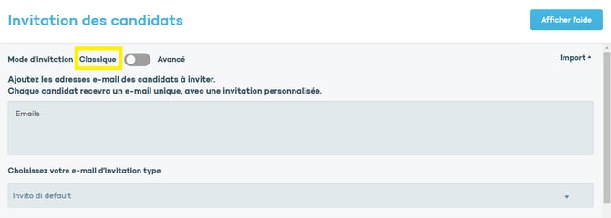 Le mode d’invitation classique a l’avantage d’être plus rapide mais attention, il ne permet pas la personnalisation des e-mails par la civilité, le nom ou le prénom du candidat.