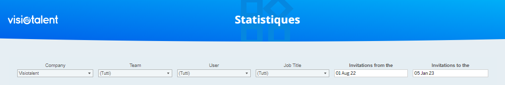Dans la section Statistiques, vous pouvez voir les statistiques d'utilisation de Visiotalent de votre entreprise.