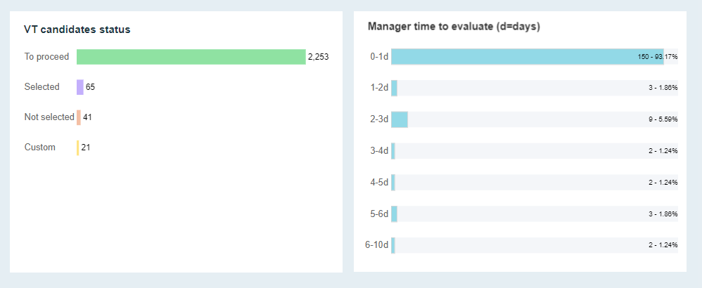 Les status des candidats et temps moyen d'évaluation par le recruteur :